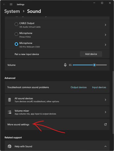 Then click on the “more sound settings” option.