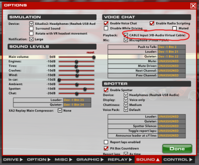 In the iRacing simulator options, all you need to do is make sure that the “CABLE Input” device is selected under the Voice Chat options.