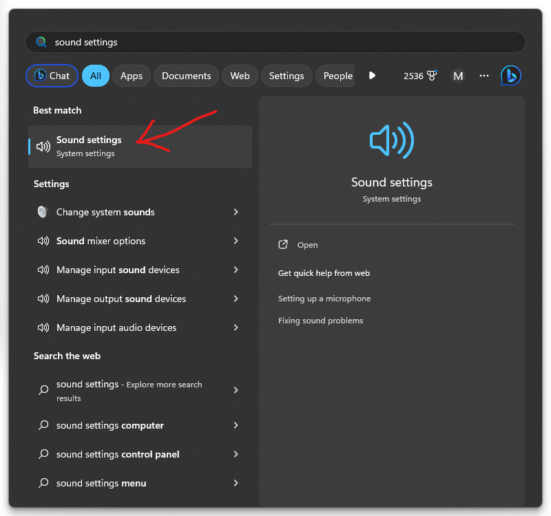 Hit your Windows key and type “sound settings”.